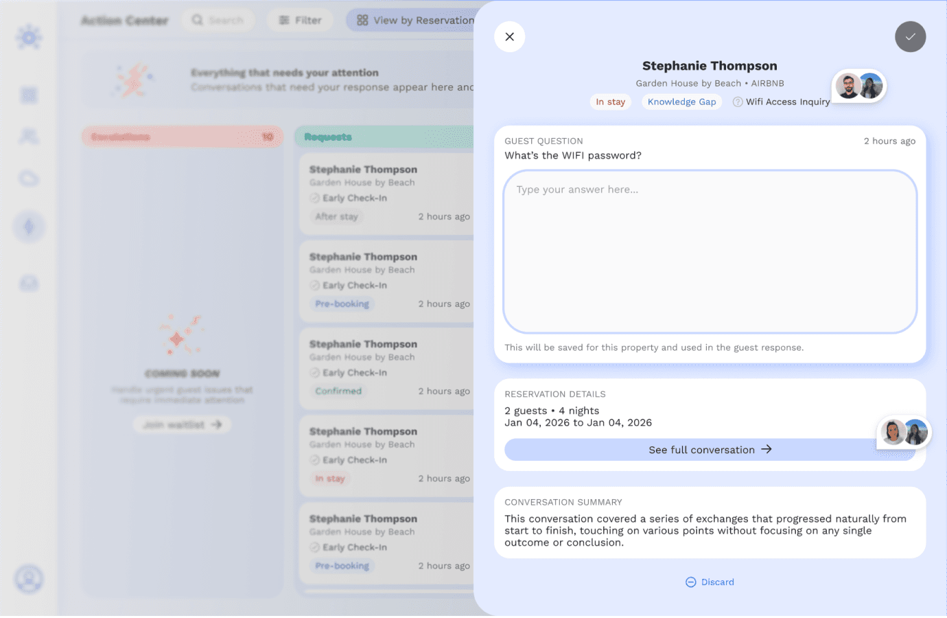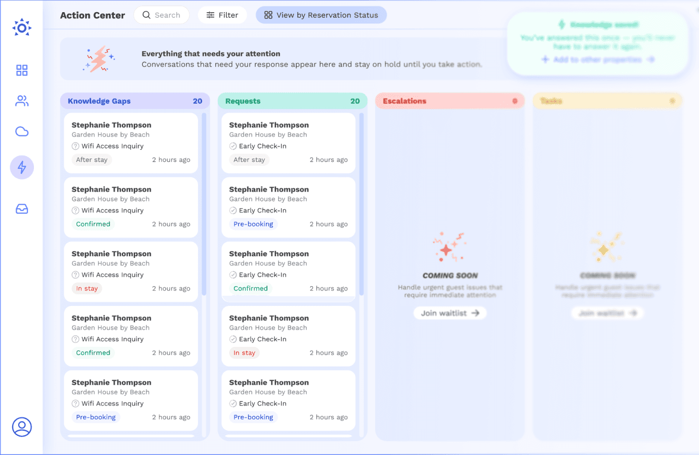 As new questions from guests roll in - our agents and AI will fill in the SOP knowledge gaps, so that the next time it comes up, we can answer it instantly without asking you.